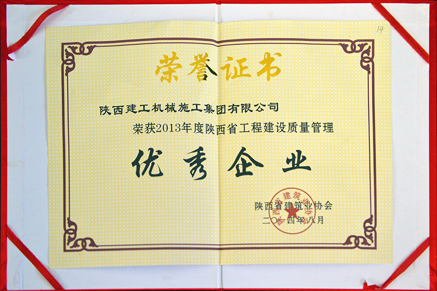 2013年度陕西省工程建设质量管理优秀企业